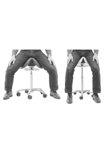 Vakioistuimena käyttämämme kapea malli mahdollistaa ihanteellisen 128 asteen lantion kulman (ylävartalon ja reisien välinen kulma). Kapealla istuimella istuttaessa paino jakautuu tasaisesti istuimen ja lattian välille. Kapea istuin ja sopiva istumakorkeus yhdistävät terveellisen seisovan asennon ja istumamukavuuden. Kapealla istuimella istujan reidet ovat levollisemmassa asennossa lähempänä toisiaan, jalkojen osoittaessa eteenpäin. Näin lantio, selkäranka ja pää ovat samassa painovoimalinjassa, vähentäen lihasjännitystä. Ihanteellinen istuma-asento toteutuu myös Limppu– ja Shape -tuolimalleissamme, joissa istuja on samantyyppisessä asennossa kuin kapealla satulatuolilla.