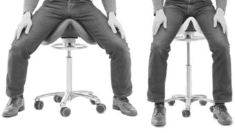 - Älä säikähdä, jos satulatuolilla istuminen aiheuttaa ensi alkuun kolotusta kropassa. Uuden istuma-asennon opettelu vaatii totuttelua